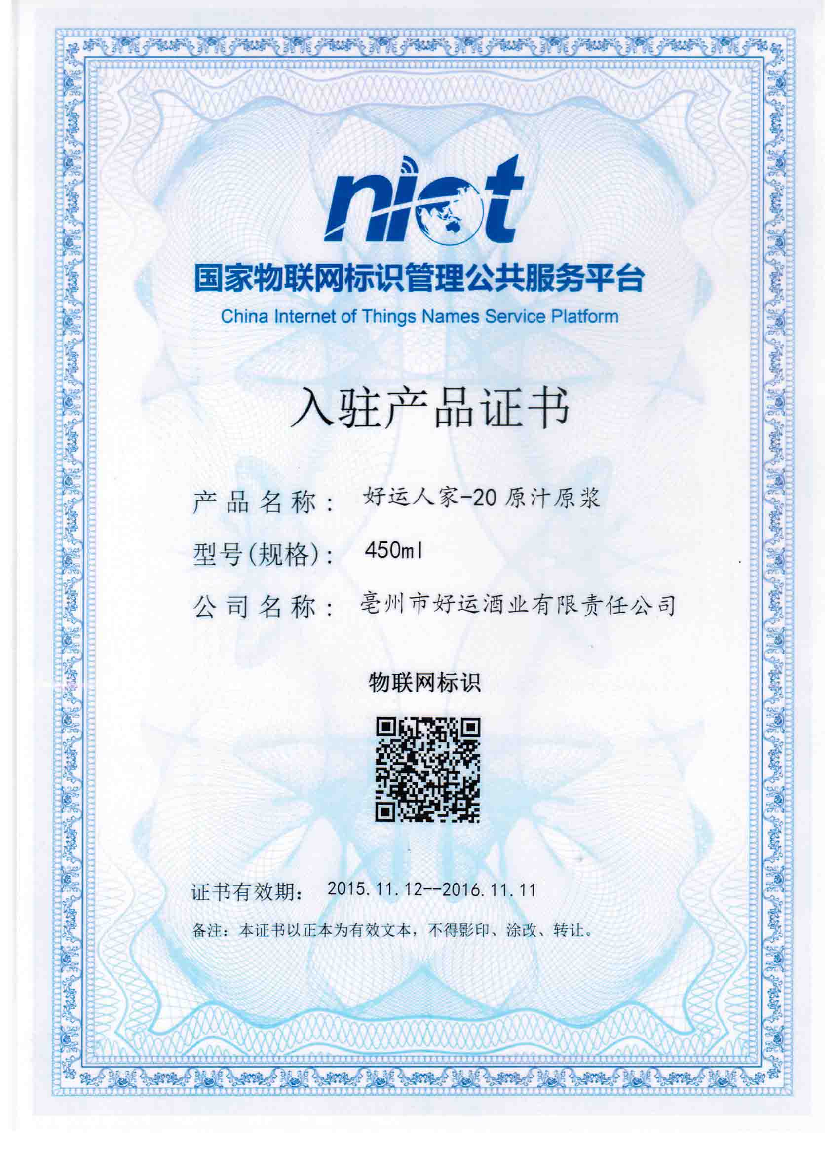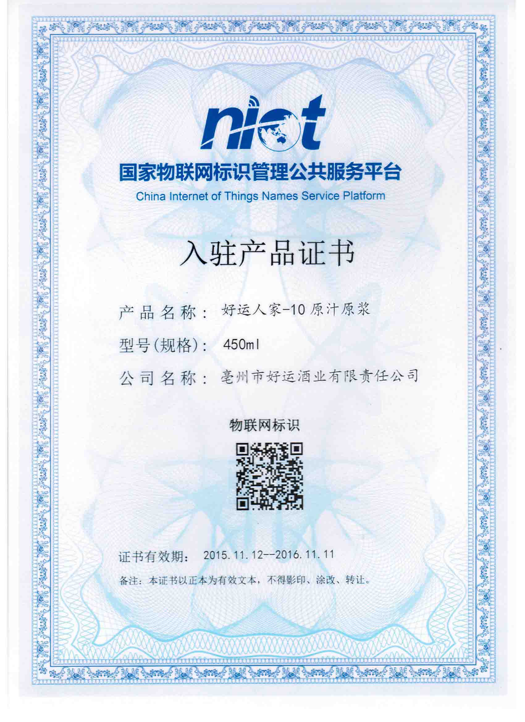(好運(yùn)人家—10年原汁原漿)入駐國家物聯(lián)網(wǎng)