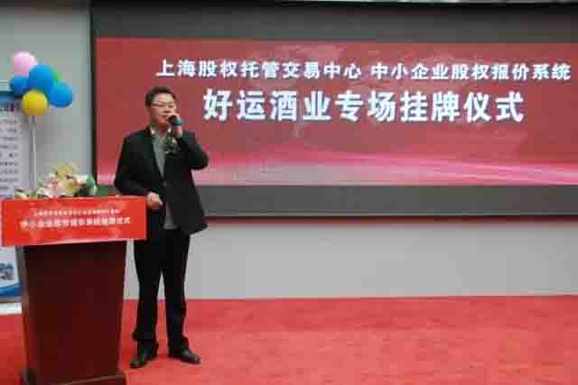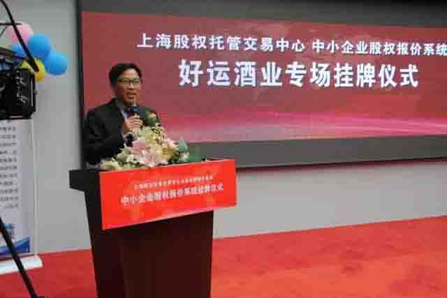 亳州市政府金融辦副主任周明華在好運(yùn)酒業(yè)專場掛牌儀式上致辭